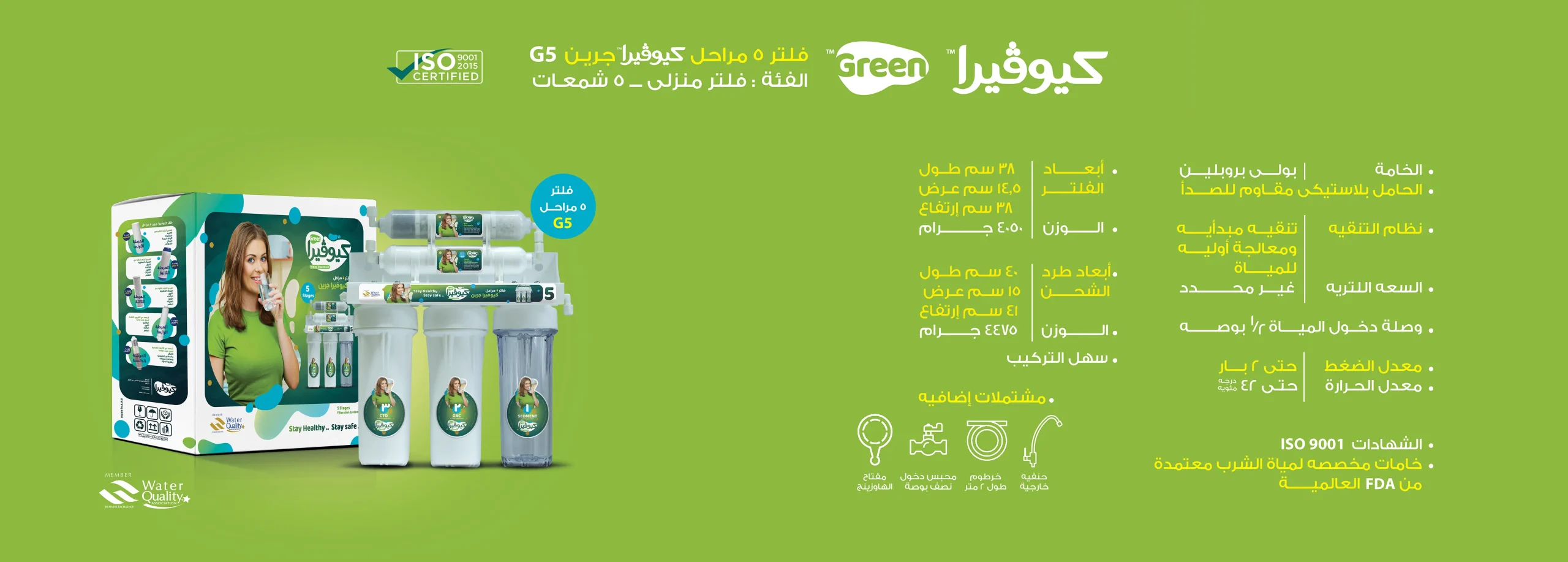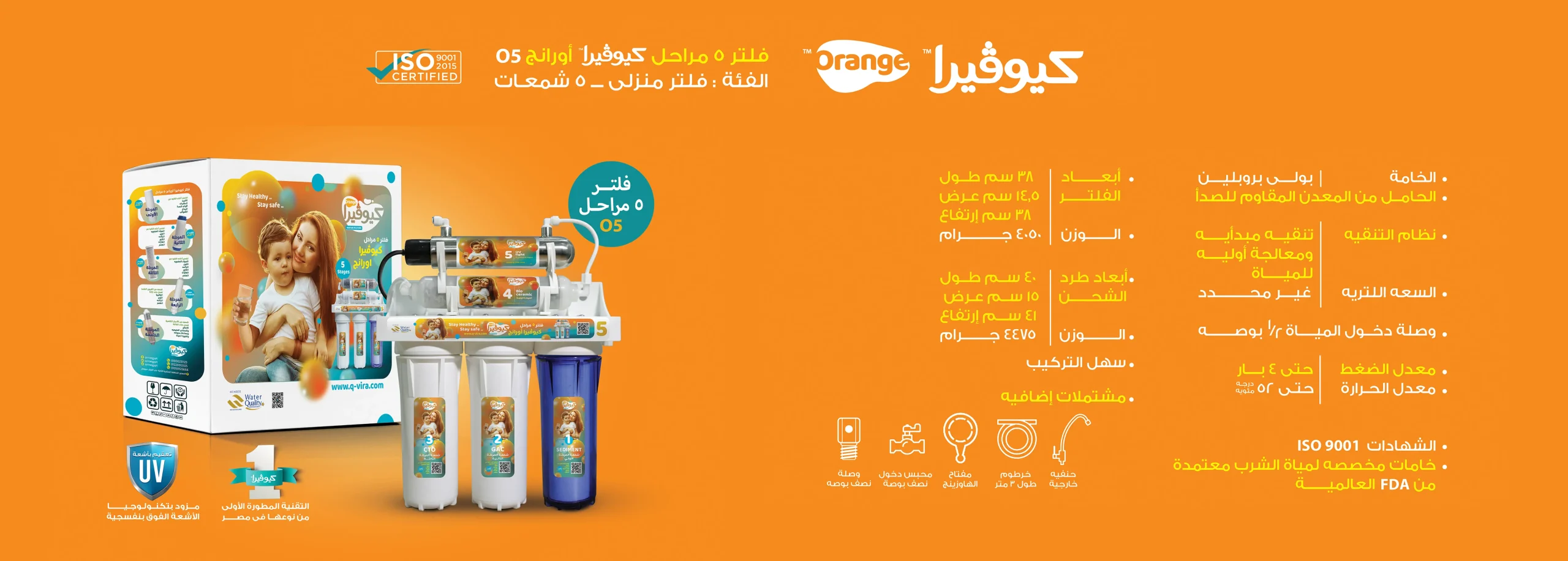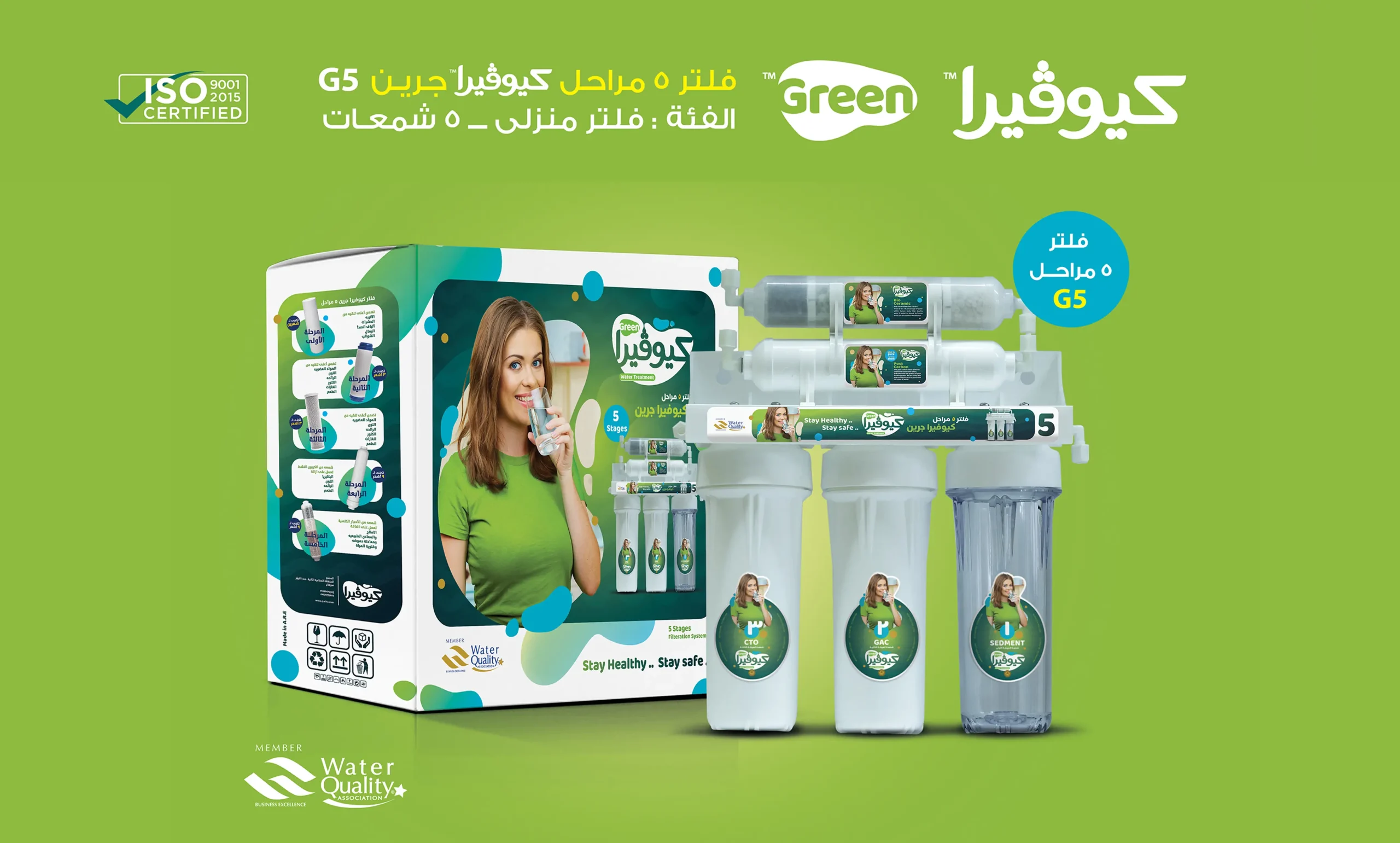اكتشف النقاء المطلق مع فلتر مياه كيوفيرا المتطور. يعتمد هذا الفلتر على تقنية MicroShield التي تضمن إزالة 99.9% من الشوائب ليمنحك ماءً نقيًا وصحيًا. يتميز هذا النظام بخمس مراحل تنقية يعتبر الأفضل في استبعاد الأتربة، الصدأ، الكلور، والروائح الكريهة من مياه الشرب الخاصة بك.